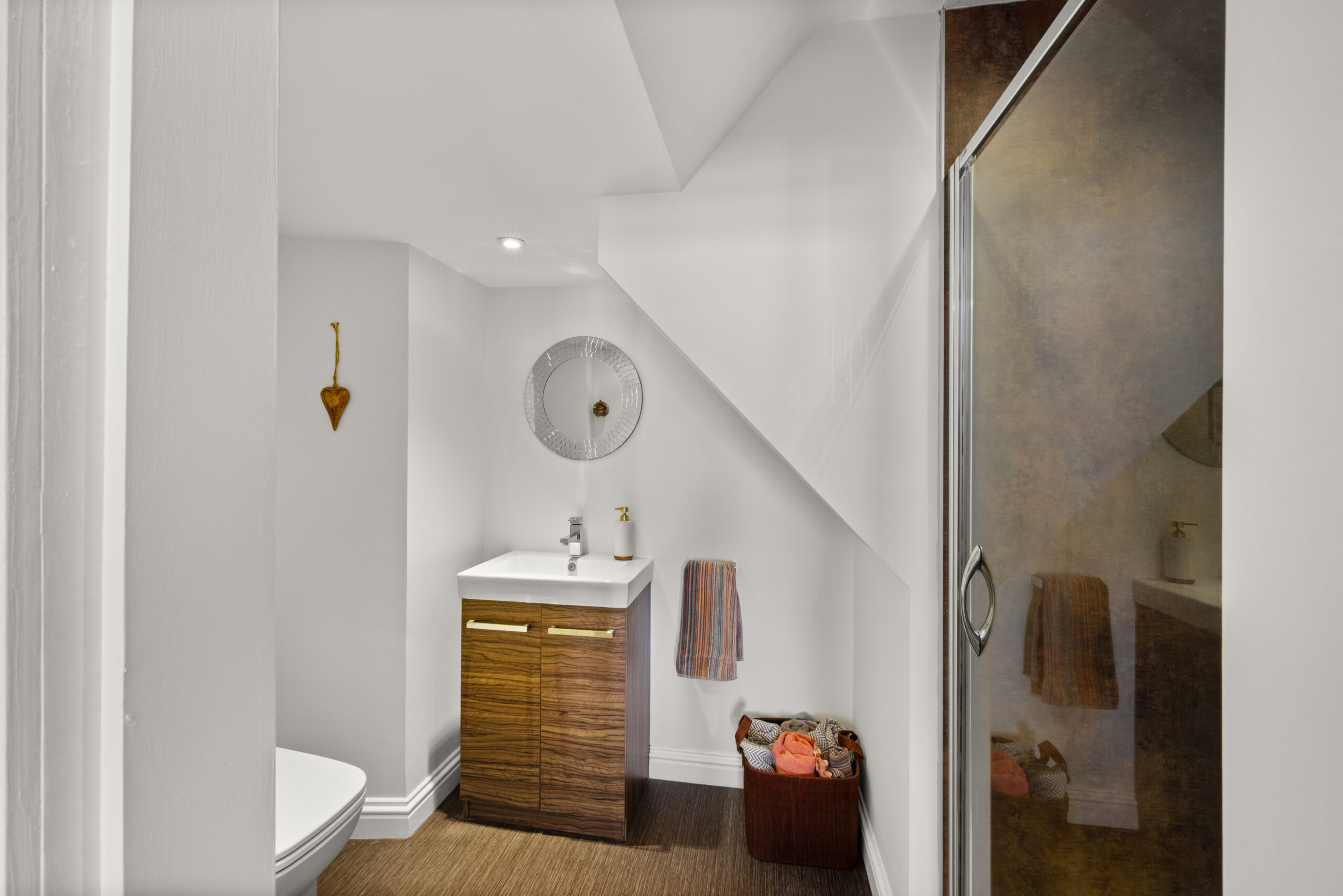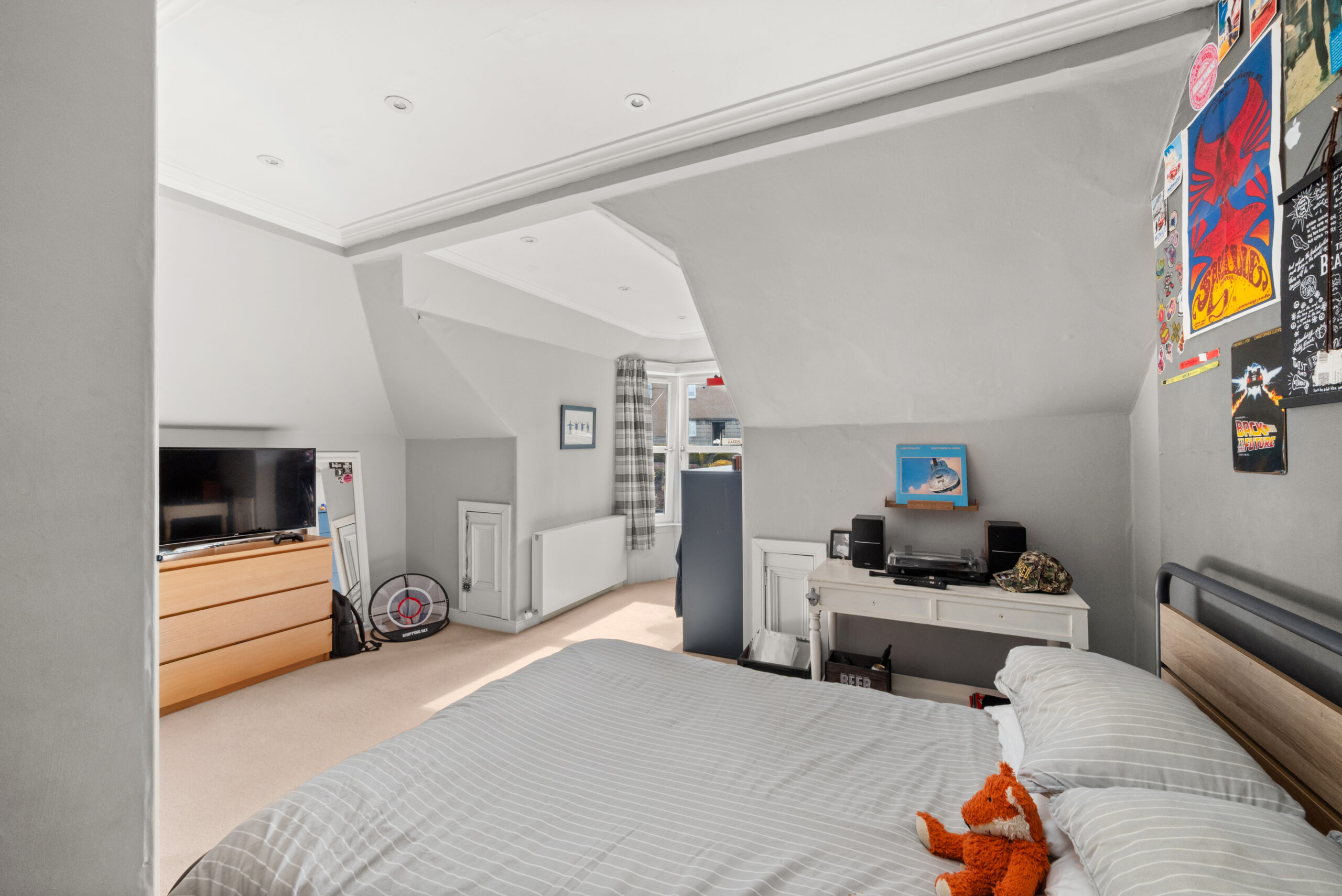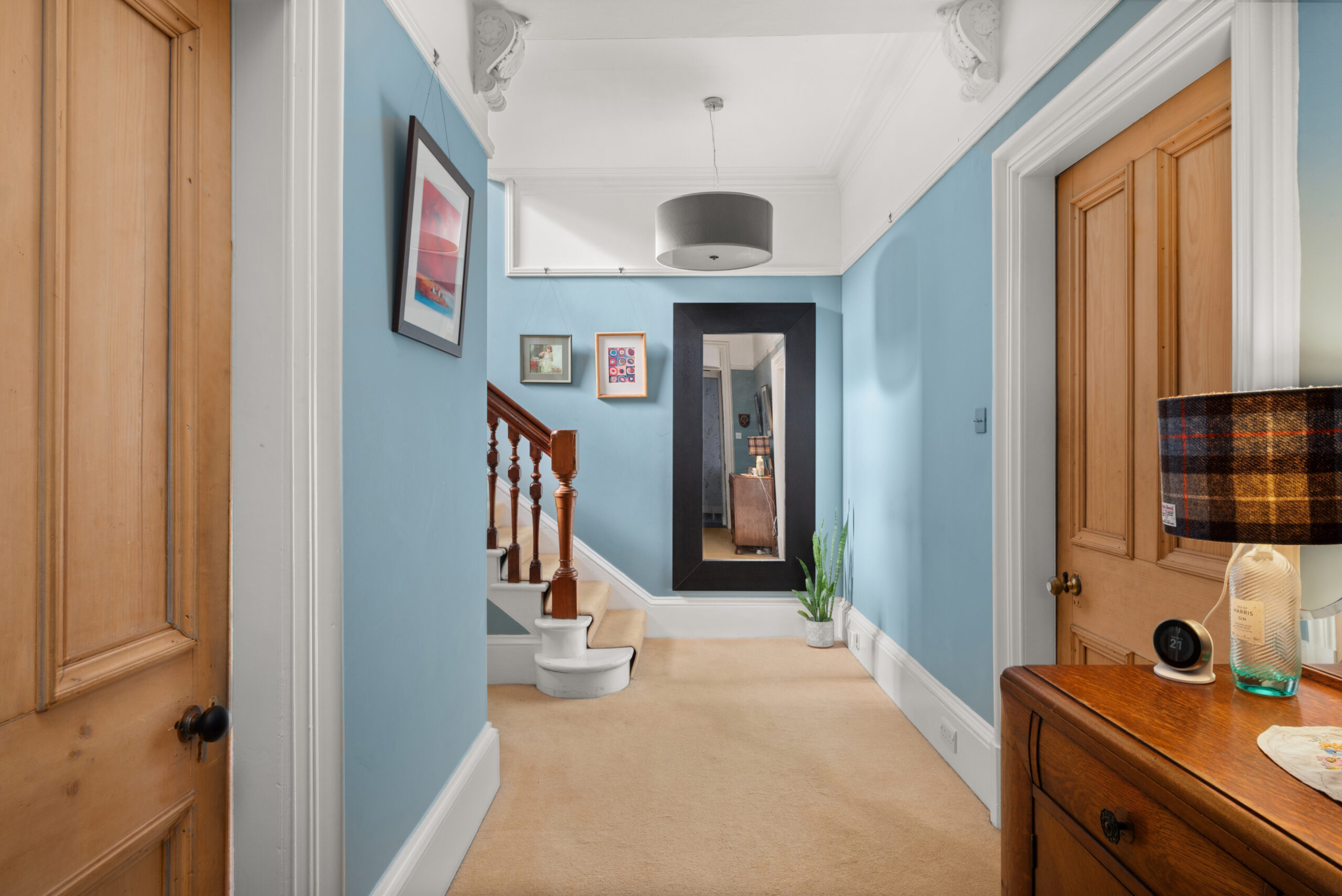 The accommodation is thoughtfully arranged across the upper floors, with the first and second floors providing well-proportioned bedrooms and family bathroom space, while the elevated front-facing rooms continue to enjoy the benefit of the open outlook. This three-storey layout gives the house a natural sense of balance, with the public rooms on the lower level and peaceful private accommodation above.
