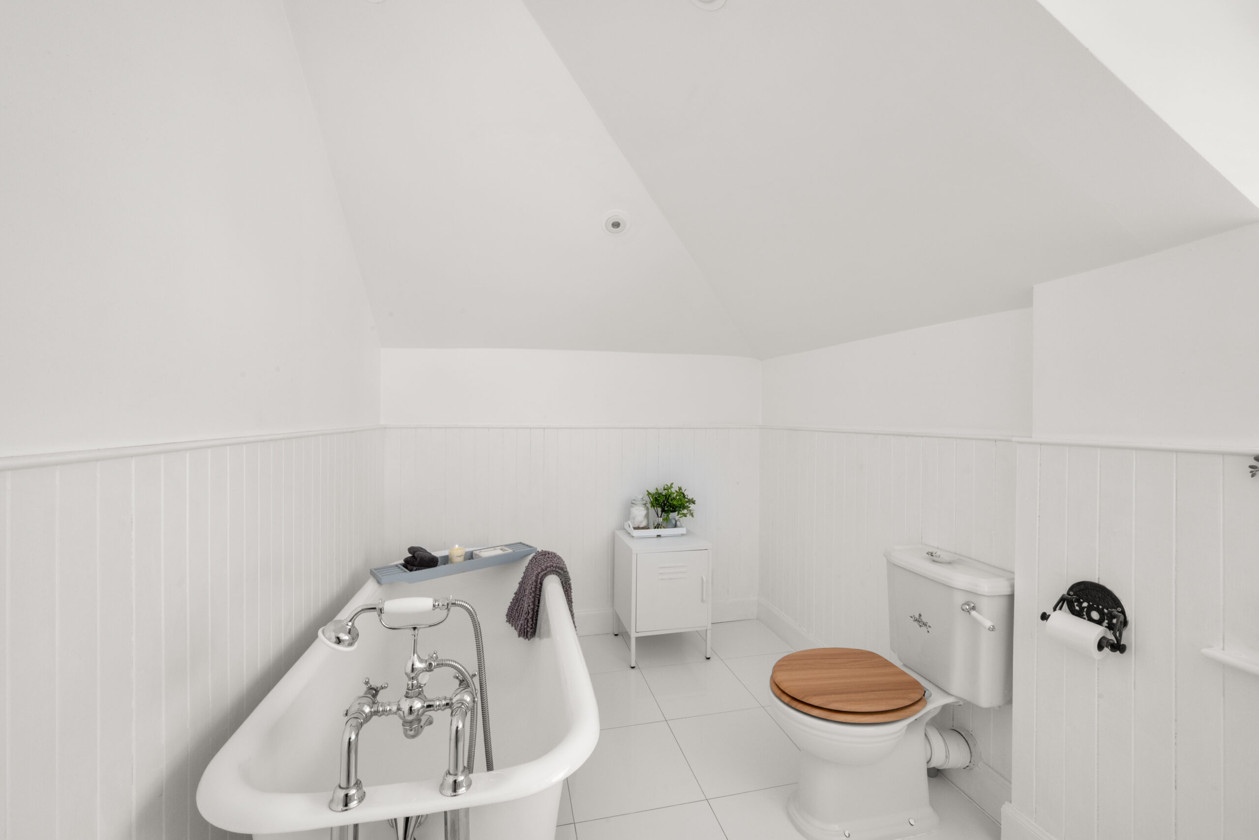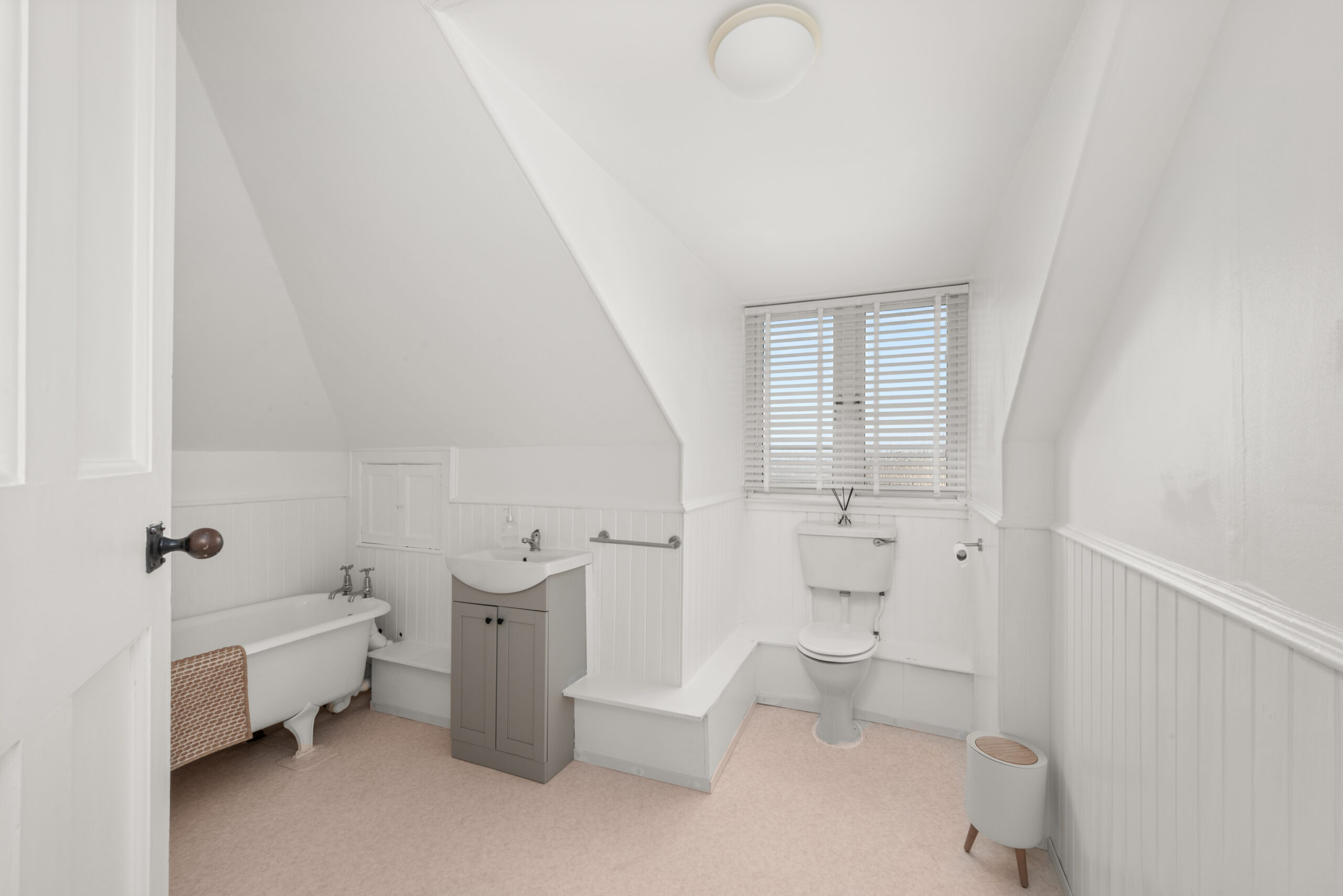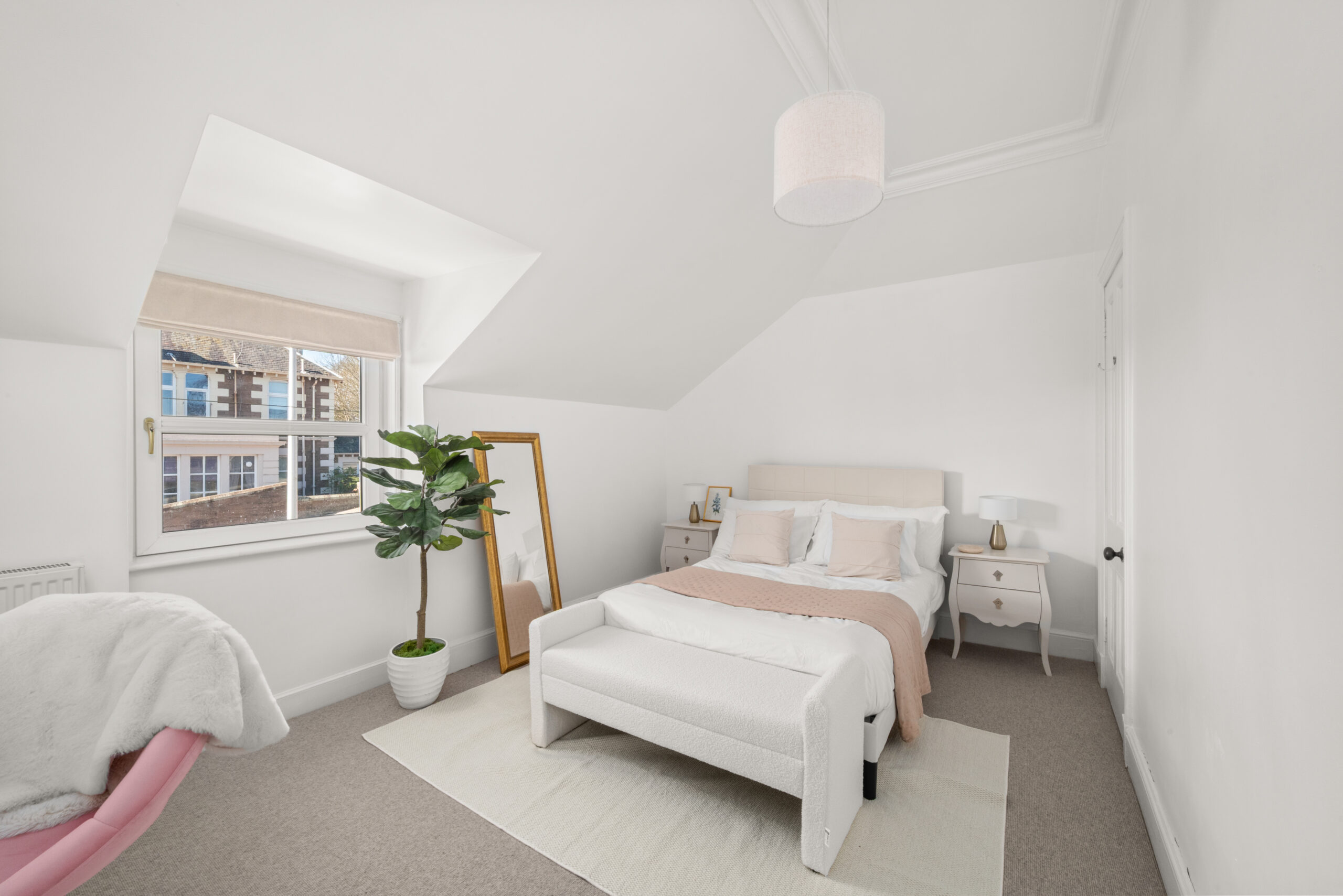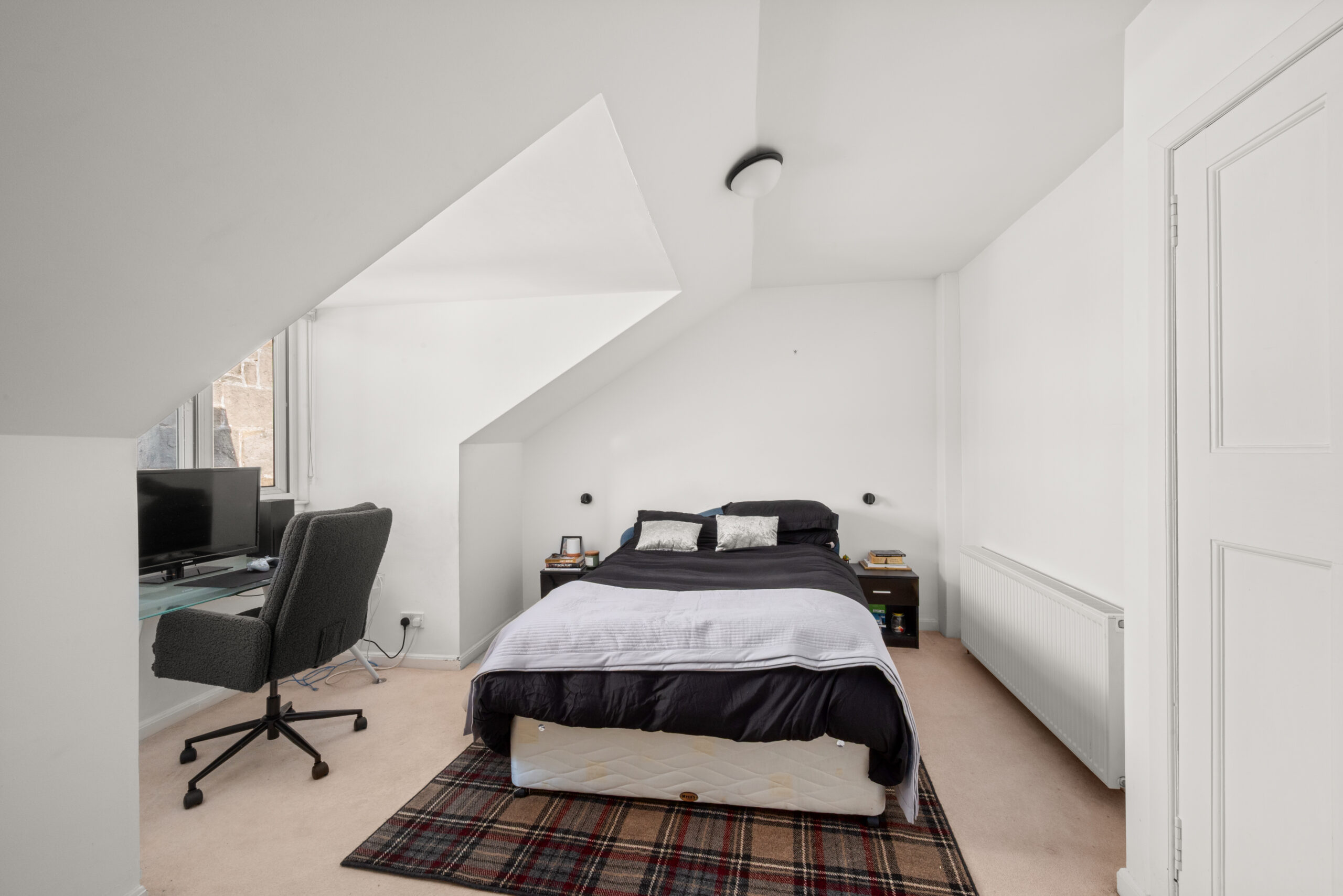 Across the upper floors, seven bedrooms, a bathroom, shower room and upper bathroom provide accommodation that scales easily across guest rooms, family bedrooms and dedicated workspace. The main bedroom is a calm space with a built-in window seat and windows that frame an open Tay panorama. On a clear day, the view carries well into the distance.
