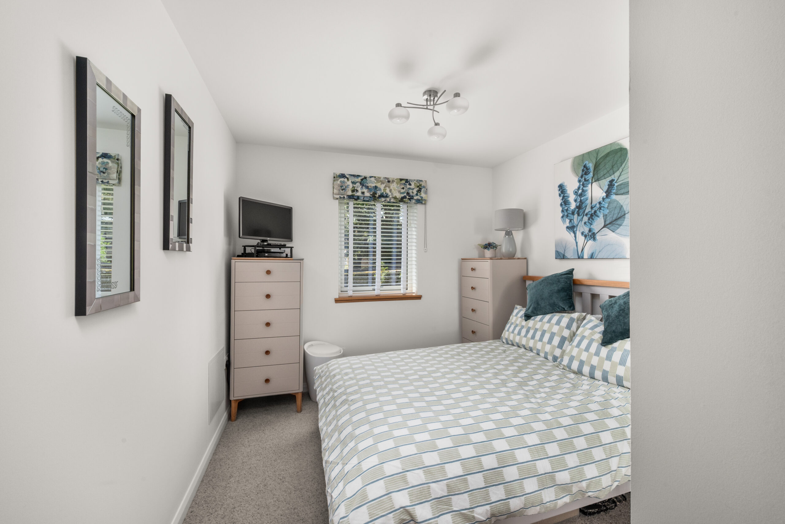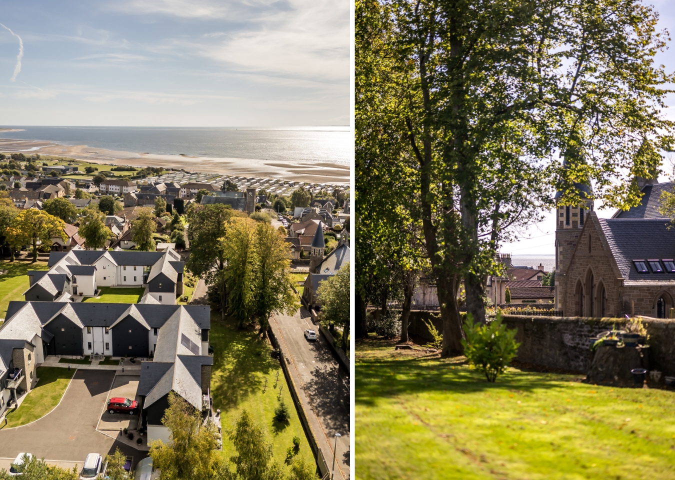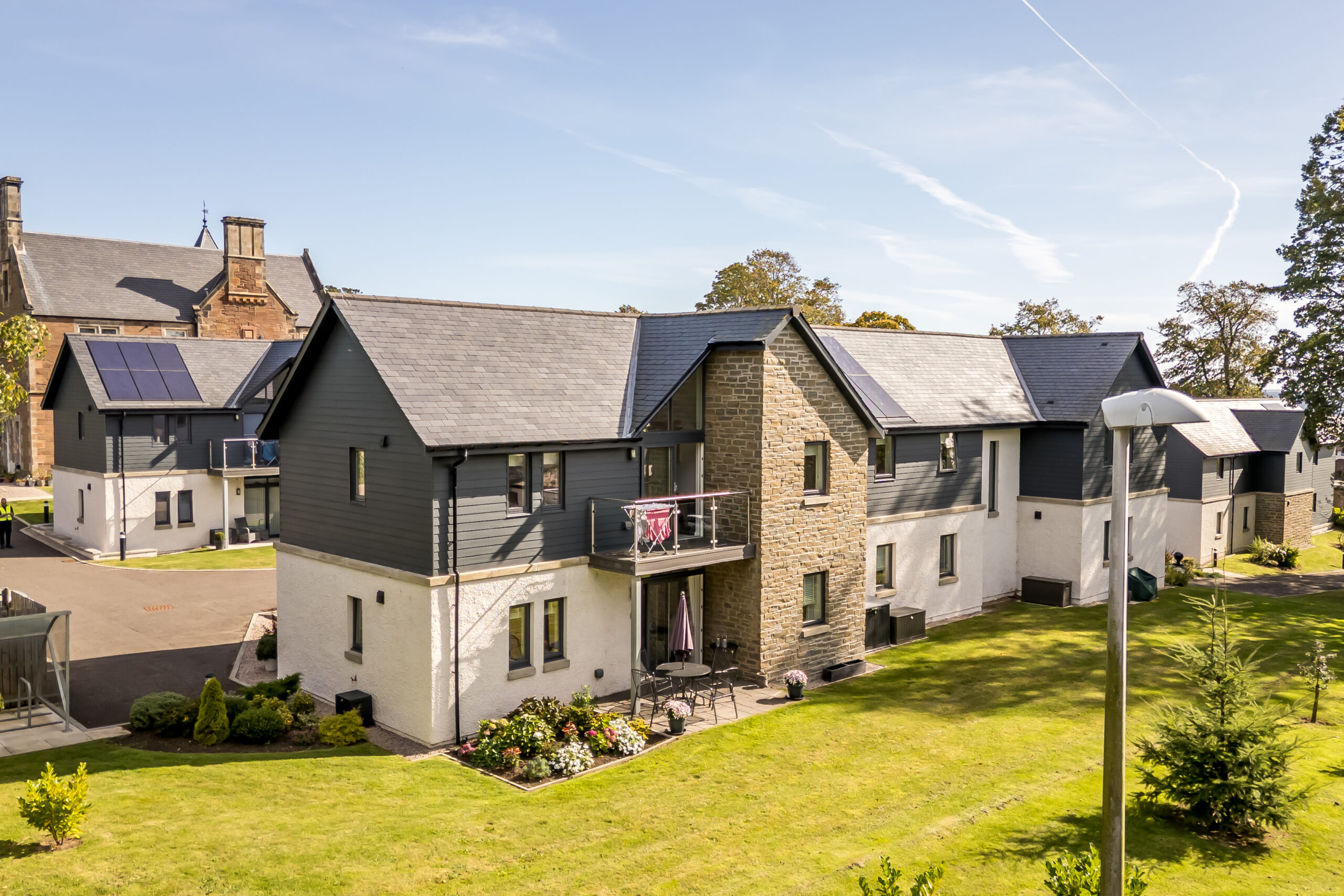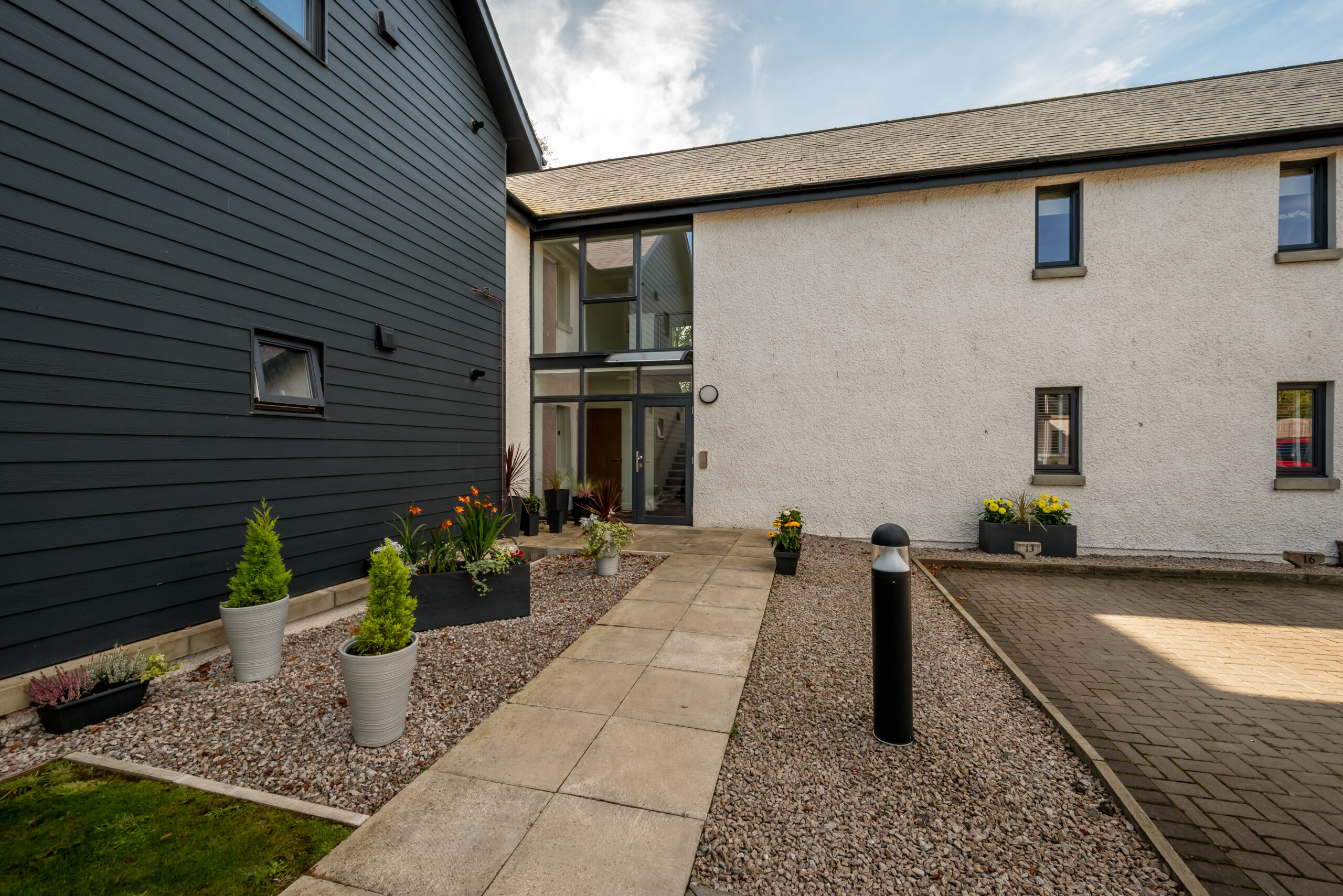 Outside, the development is framed by tidy lawns and established greenery, giving a calm feel to the setting, and the property also benefits from two allocated parking spaces within the development.