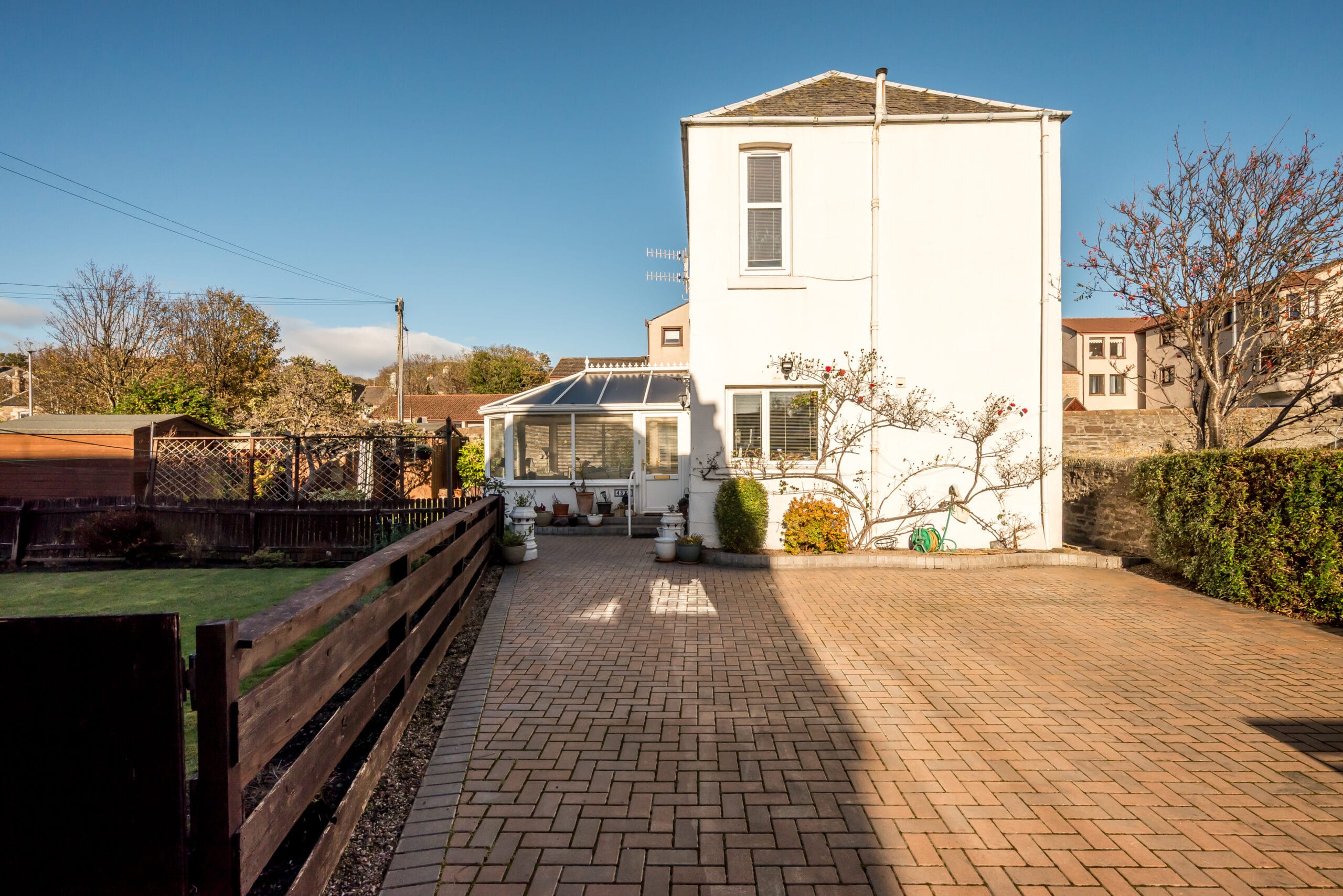 The garden is private and well kept, with a mix of lawn and patio areas, ideal for BBQ’s. A large, mono block driveway to the side provides off-street parking.