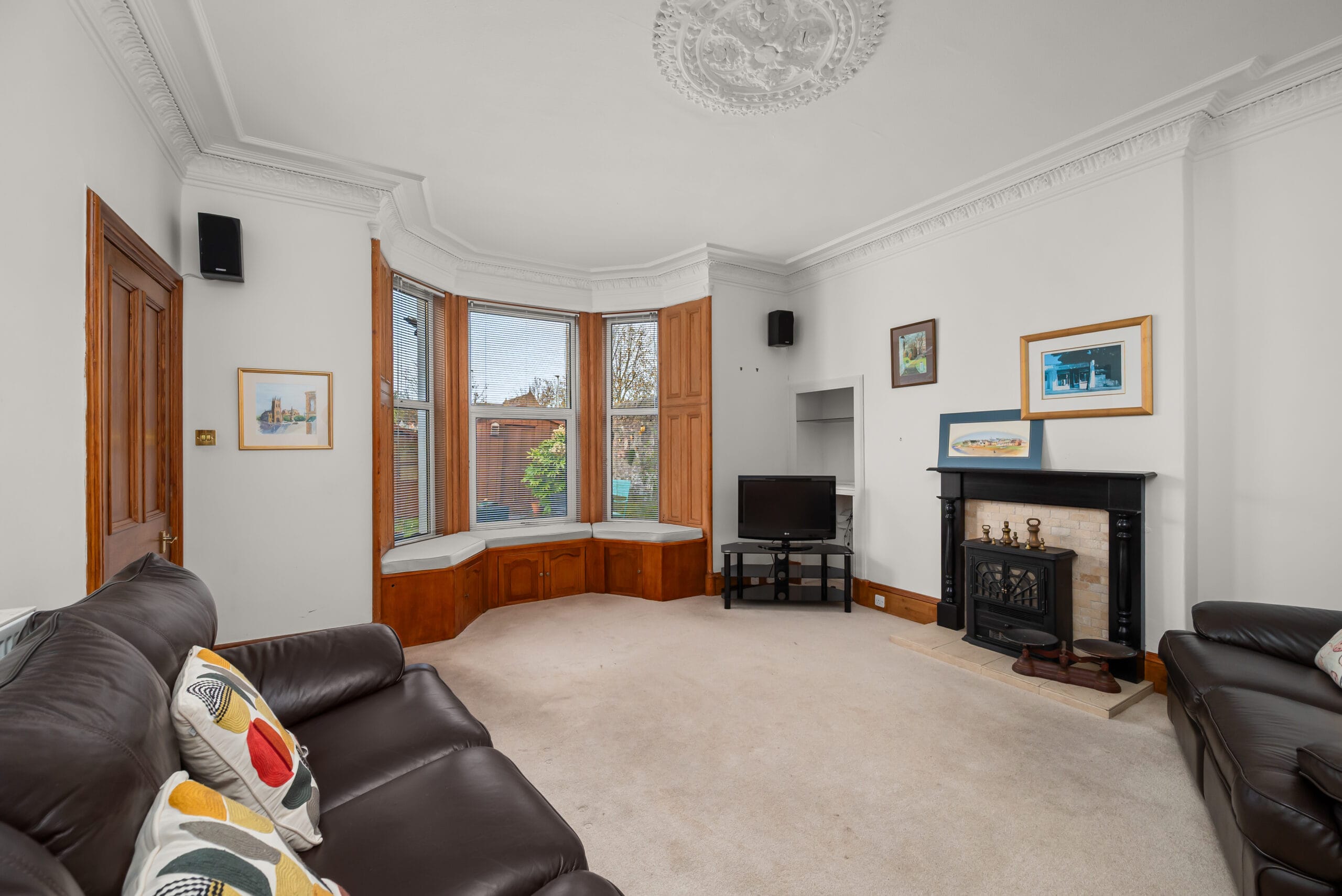 On the ground floor, there’s a bright lounge with a bay window, fireplace and original features, including detailed cornicing. The kitchen is modern and spacious, with room for dining and everyday use. Just off the kitchen, the conservatory provides additional living space and opens directly onto the garden. A downstairs WC is also located off the main hall.