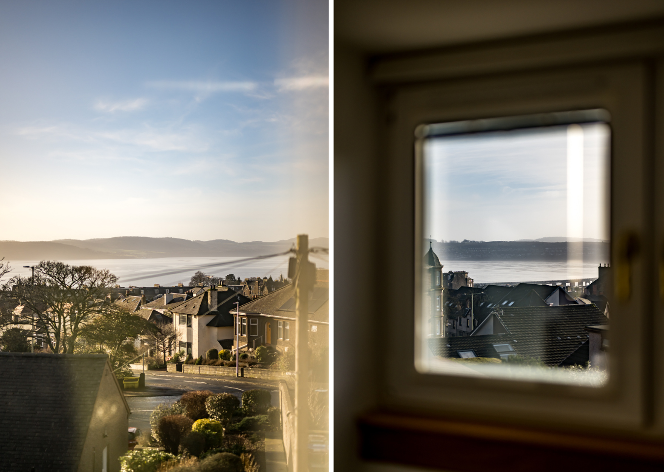 Upstairs, the principal bedroom feels calm and considered, with a dormer window framing fantastic, far-reaching views across the rooftops to the Tay. This serene space is complemented by a beautifully finished en suite shower room with elegant tiling and contemporary fittings, offering a true sense of retreat.
