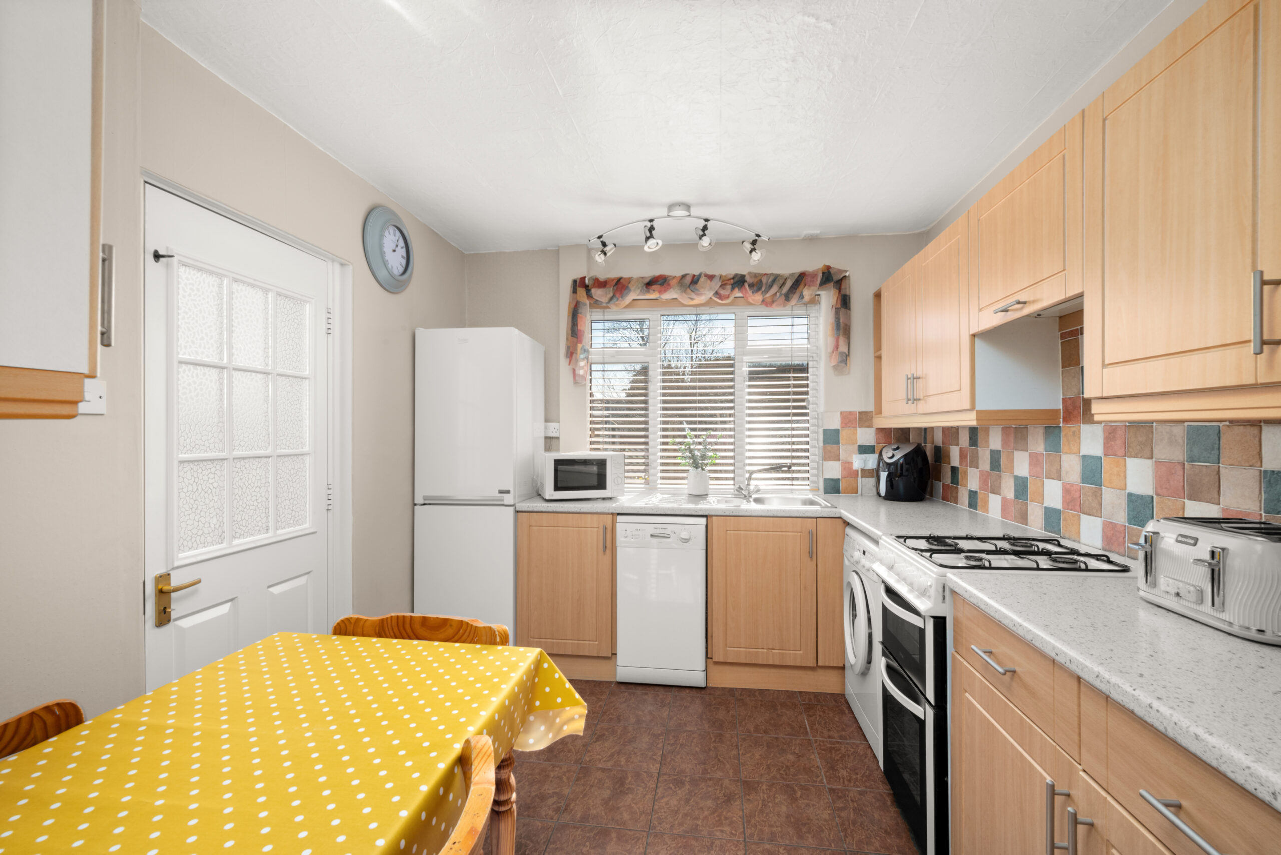 The ground floor is centred around a bright lounge/diner, creating a welcoming main living space with plenty of room for both relaxing and everyday dining. A feature fireplace adds a focal point to the room, while the dual aspect helps bring in good natural light. The kitchen sits to the rear and is fitted with a good range of units and worktop space, with room for casual dining and direct access out towards the garden.