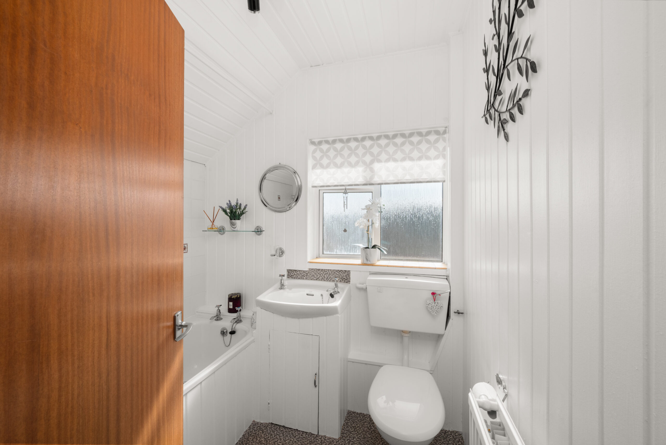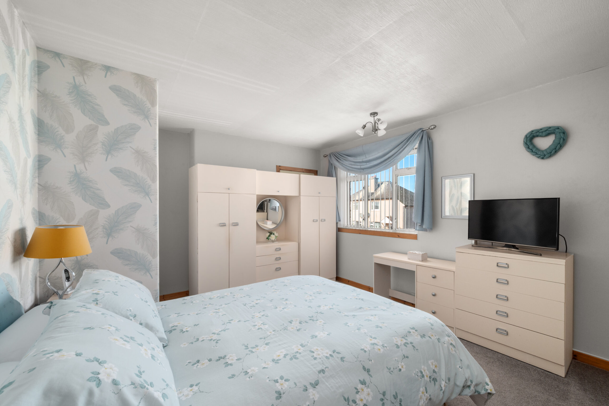 Upstairs, there are two well-proportioned bedrooms and a family bathroom. The main bedroom is particularly generous in size and offers excellent space for freestanding furniture, while the second bedroom would work equally well as a guest room, child’s room or home office.