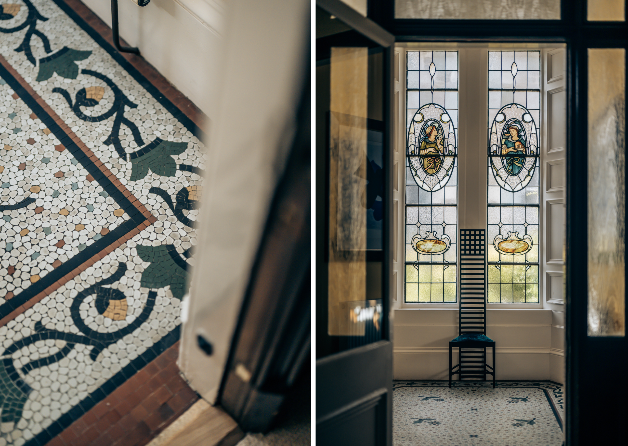 Upstairs, five well-appointed bedrooms provide ample accommodation, including a spacious principal suite with an en-suite bathroom. The modern family bathroom serving the additional rooms. The billiard room is a true showpiece, crowned by an extraordinary stained-glass ceiling that bathes the space in a warm, colourful light.