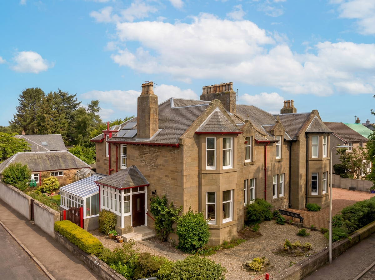 Blythwood, 83 Seafield Road is a striking traditional stone villa set on one of Broughty Ferry’s most established and desirable streets, just a short walk from the town centre, beach promenade and highly regarded local schools. Owned and carefully maintained by the same family for more than 40 years, it is a home of real presence and enduring character, with a flexible layout that lends itself beautifully to family life, including four bedrooms overall, one on the ground floor, a bay-windowed lounge, formal dining room, dining kitchen, utility room, conservatory, and a substantial garage with adjoining workshop.