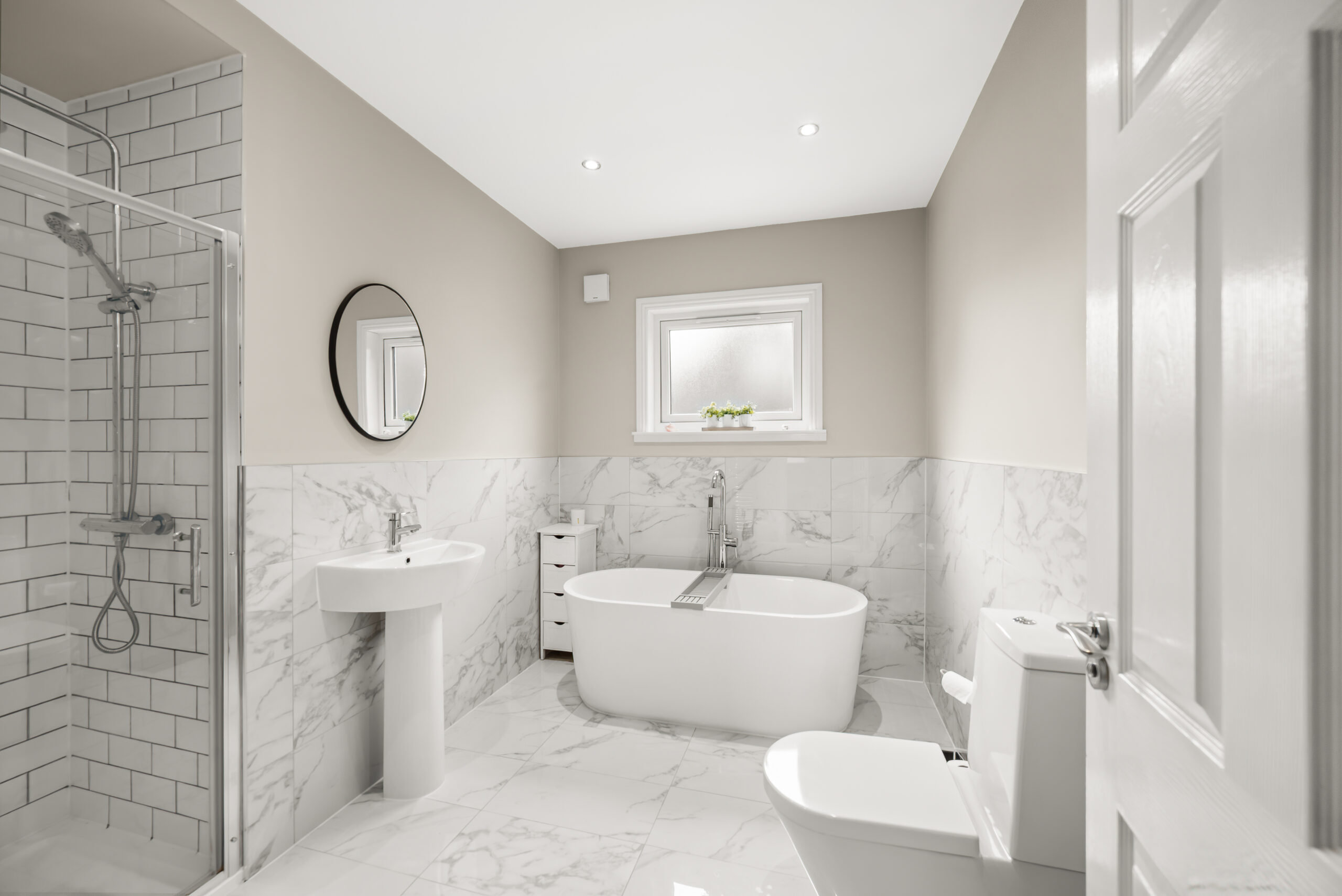 Upstairs, the sense of space continues with three further double bedrooms, including an impressive principal room with excellent proportions and a dedicated walk-in dressing area. The master en-suite bathroom is a real gem with a free-standing bath and a large shower enclosure. The family is exceptionally well served on this level thanks to a modern bathroom with a contemporary tiled finish.