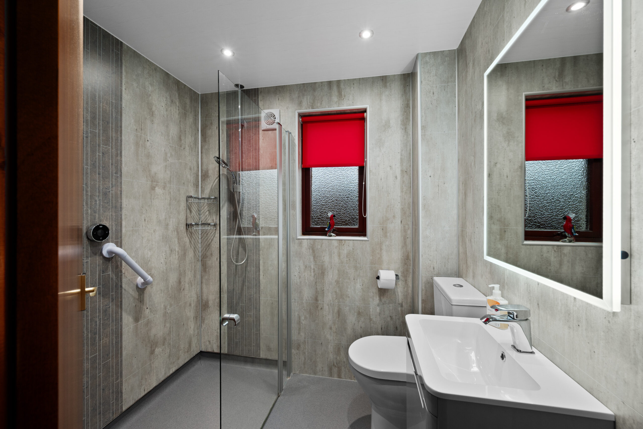 Both bedrooms are well proportioned and quietly positioned. The principal bedroom benefits from fitted wardrobes, keeping the space calm and uncluttered, while the second bedroom offers flexibility - ideal as a guest room, home office or hobby space. The shower room has been stylishly modernised, finished with contemporary tiling and a sleek walk-in enclosure, adding a fresh and practical touch.