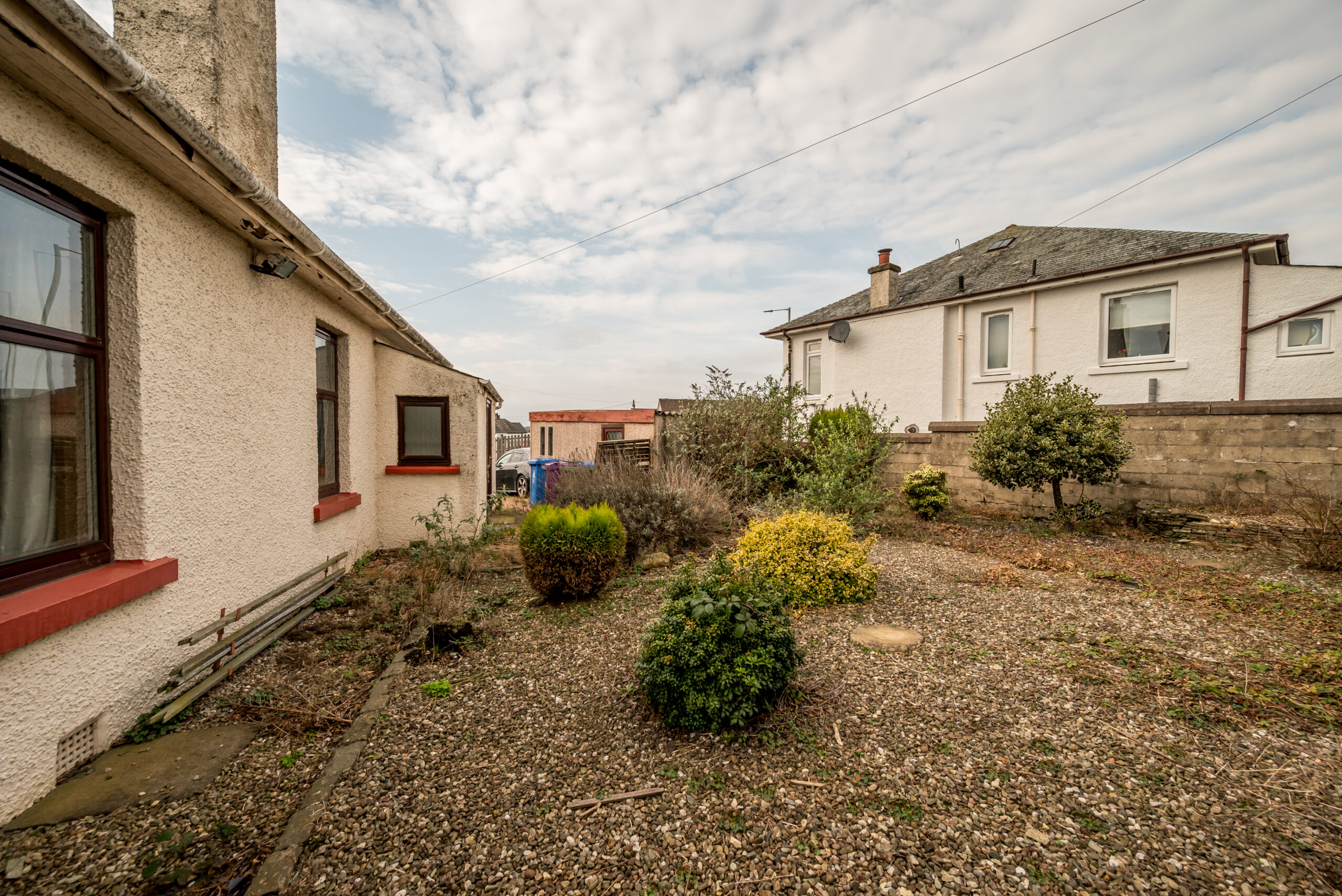 Outside, the property enjoys an attractive wraparound garden bordered by stone walling, with established planting adding colour and privacy. The corner position gives the home a pleasing sense of space and strong kerb appeal within this quiet residential street.